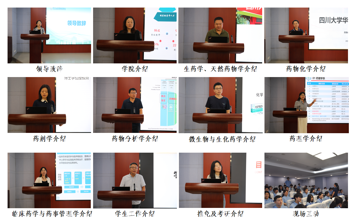范瑾致欢迎辞,围绕“欢迎”、“链接”、“传承” ,与青年学子分享百年华西药学的深厚积淀。她指出,本次夏令营致力于搭建一个多维度的链接平台,帮助营员们深入感知学院的学科发展水平、前沿科研动态,并与众多学术导师建立联系,希望营员们在这里碰撞思想、丰富知识、有所收获。何勤全面介绍了学院的特色学科优势以及卓越的人才培养体系,让营员们深入了解了学院雄厚的师资力量和研究平台。各学系代表教师分别介绍了学系情况和导师研究方向。相关负责人还就学生活动、奖学金与就业情况、推免与考研政策等作了说明。